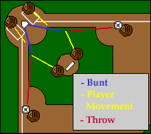 Each pitcher will go through the pitching motion and throw a pitch to the catcher. The coach will roll out a ball down the third base or first base line. If down the third base line the pitcher will field it and make the pivot and throw to third. If down the first base line the pitcher will make the throw to first.